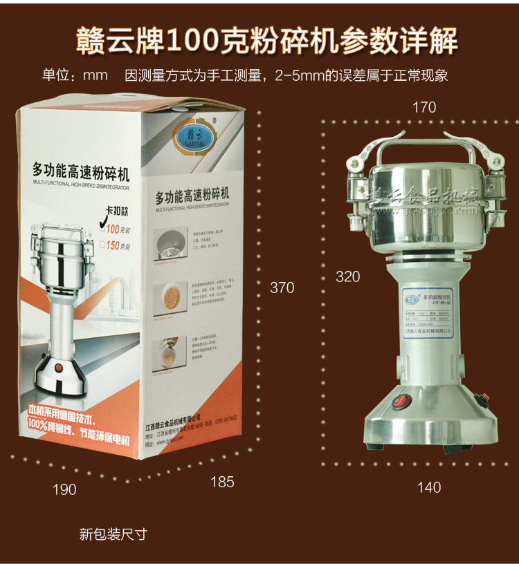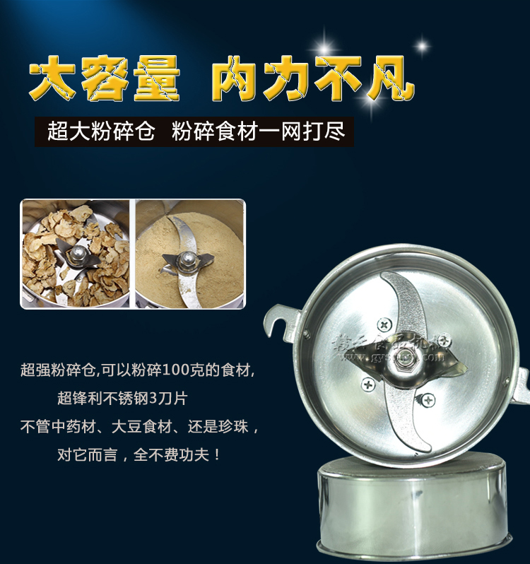 小設(shè)備折扣區(qū)->100克直立卡口粉碎機 | |||||||