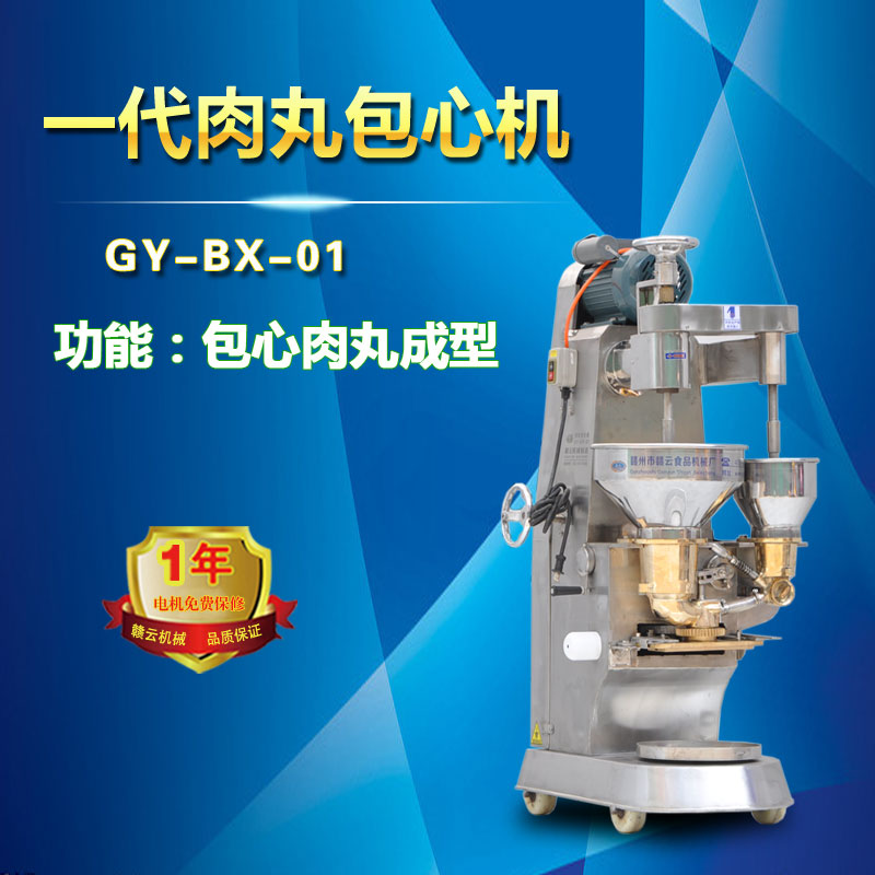 贛云牌新款第一代肉丸包芯機,包餡丸子成型機,外形更美觀,精致小巧,采用優(yōu)質(zhì)不銹鋼材質(zhì),部分接觸食品采用銅材料,符合食品衛(wèi)生加工需求,能生產(chǎn)規(guī)格15mm-42mm之間實心丸子,生產(chǎn)28-42mm之間包餡丸子,成型規(guī)格統(tǒng)一,圓度好。