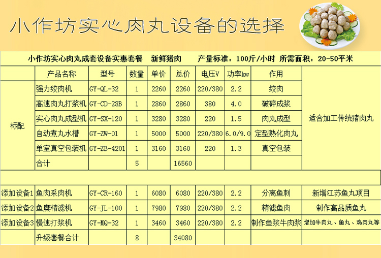 我司推薦的這套作坊式時(shí)產(chǎn)100斤豬肉丸標(biāo)配設(shè)備主要由:32型強(qiáng)力絞肉機(jī)、28型全封閉高速肉丸打漿機(jī)、120型實(shí)心肉丸成型機(jī)、01型自動(dòng)煮丸水槽和4201型真空包裝機(jī)組合而成。該套肉丸加工設(shè)備以時(shí)產(chǎn)100斤左右豬肉丸為參考標(biāo)準(zhǔn)而配置。