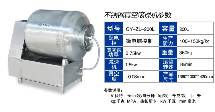 肉制品前處理->斬拌滾揉設(shè)備->200升真空滾揉機(jī)  | |||||||