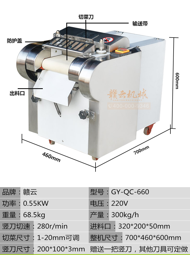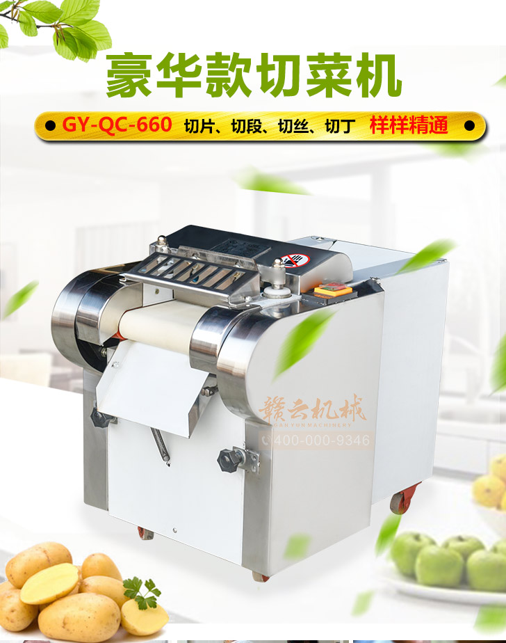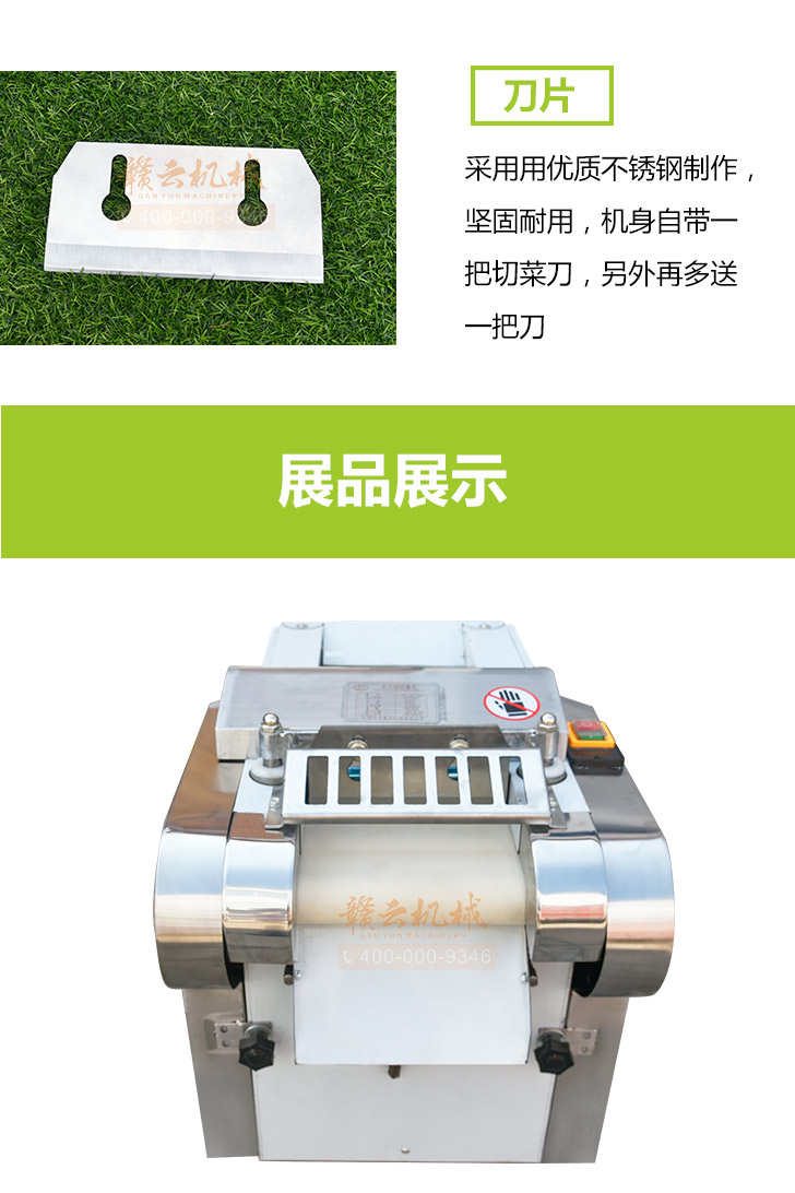 贛云牌多功能切菜機是根據(jù)多種樣機在實地使用中存在不足之處,反復(fù)改進設(shè)計制造,采用不銹鋼和全滾動軸承結(jié)構(gòu),具有外形美觀,成熟可靠,使用維修方便等特點。適用直蔬菜脫水、速凍、保鮮、腌漬等食品行業(yè)各類蔬菜。刀片距離可調(diào)節(jié)在0.1cm-2cm之間即切片、丁、絲厚薄在0.1cm-2cm。