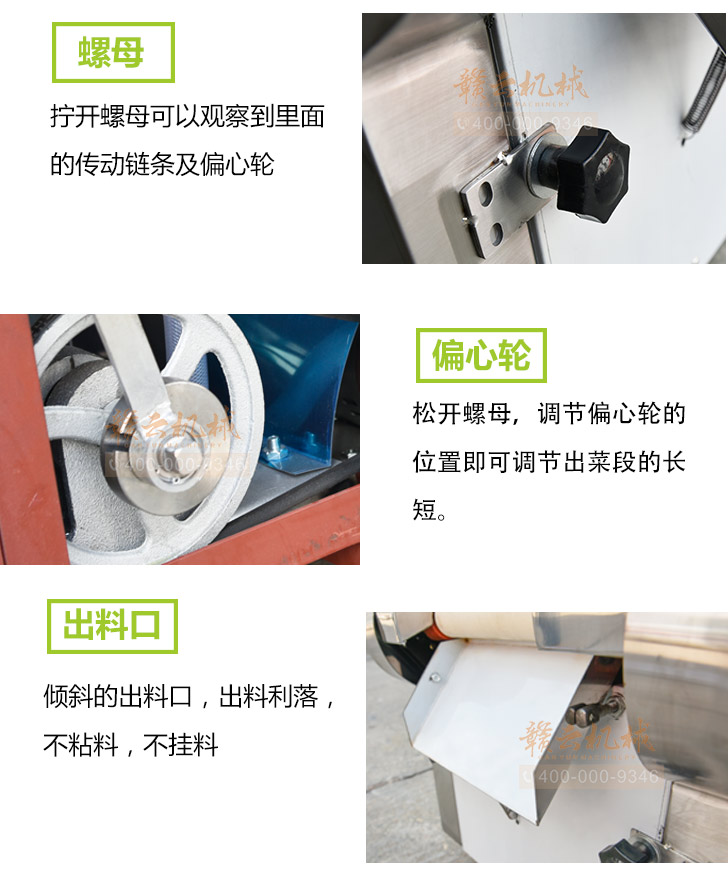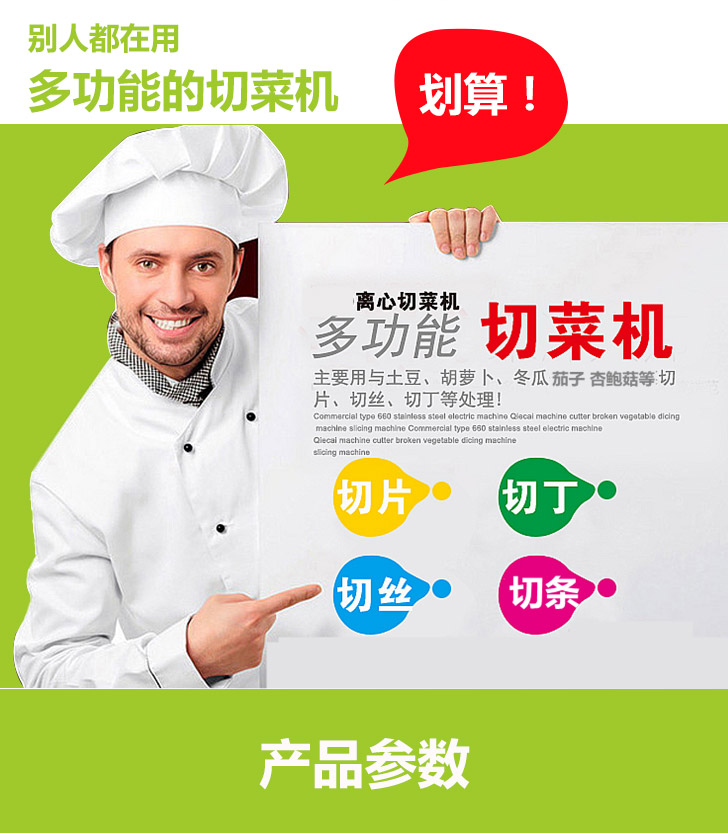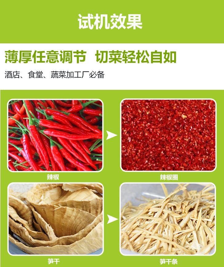 4、蘆薈粒、蘆薈條。改變切刀與送料槽安裝角度為專斜切機將根莖類蔬菜:如馬鈴薯、蕃薯、黃瓜、竹筍、洋蔥、茄子等切片、條、丁,適合衛(wèi)生餐飲人員或食品加工廠使用. 用途:葉菜類:可切芹菜、大白菜、高麗菜、菠菜、蔥、大蒜、瓜類等長條狀之物切成片、絲、段狀,適合食品加工業(yè)者配合自動化生產(chǎn)線。