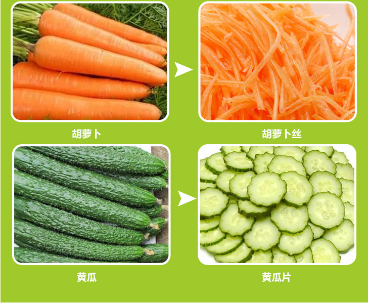 用途: 菠菜、大白菜、高麗菜、芹菜、馬鈴薯、竽頭、蕃薯、瓜類、竹筍、洋蔥、茄子、靈芝、年糕等長條狀之物切成丁、片、絲條狀.