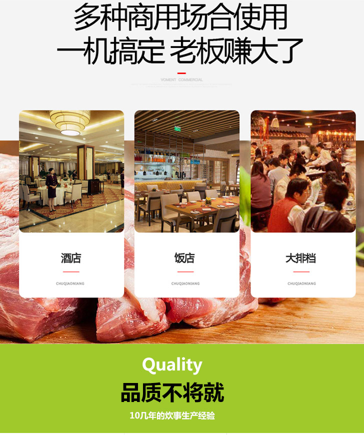 特性: 一機多用,擁用切菜機、切丁機、切絲機、切片機的功能,集多功能于一身?蓪⒏o類切成厚、薄片、絲條、丁等外形。葉菜類之輸送帶轉(zhuǎn)刀速度采用變頻器控制,獨立控制。成品形狀: 片、四角絲條、丁。