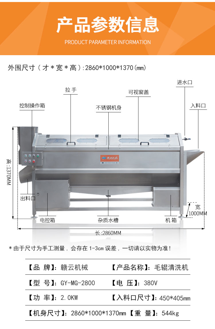 果蔬加工機(jī)械->去皮清洗設(shè)備->2800型螺旋毛滾清洗機(jī)  | |||||||