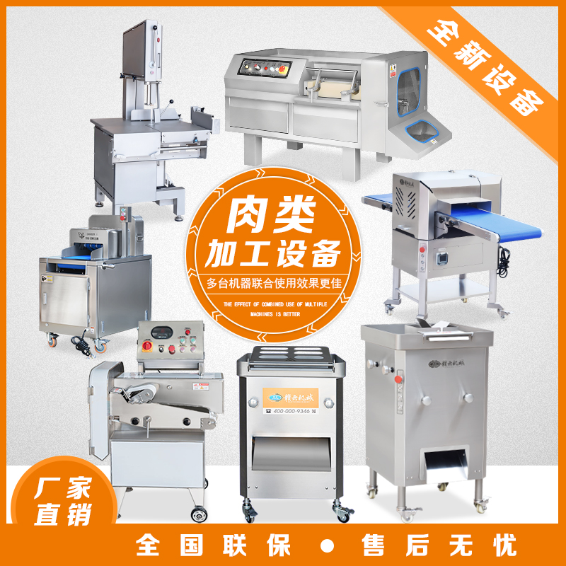 無刀化肉類加工設備,一套符合無刀化加工標準的肉類切割設備:大型自動鋸骨機、智能切塊機、120A智能砍排機、360型切肉絲機、300型切肉片機、350型平行開條機等等。