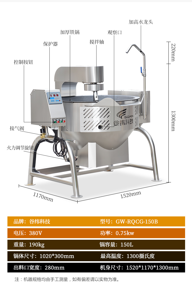 中央廚房設(shè)備->熱調(diào)理區(qū)設(shè)備->150升燃?xì)獬床藱C(jī)(帶攪拌)  | |||||||