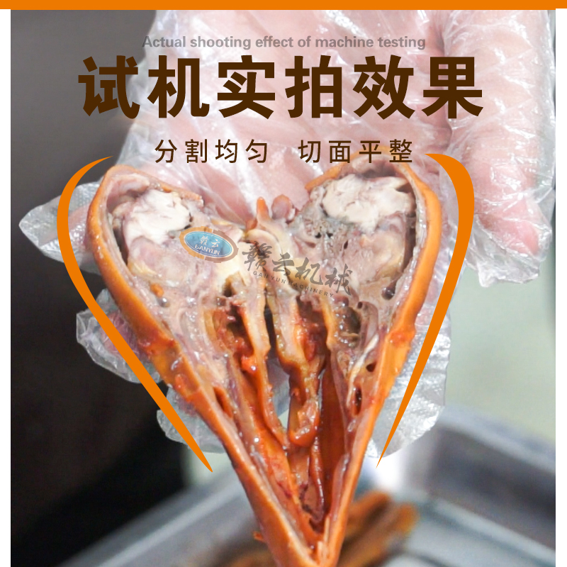 適用于常溫:雞爪、鴨頭、鵝頭、海參、胡蘿卜、豬喉等對(duì)稱(chēng)切半加工