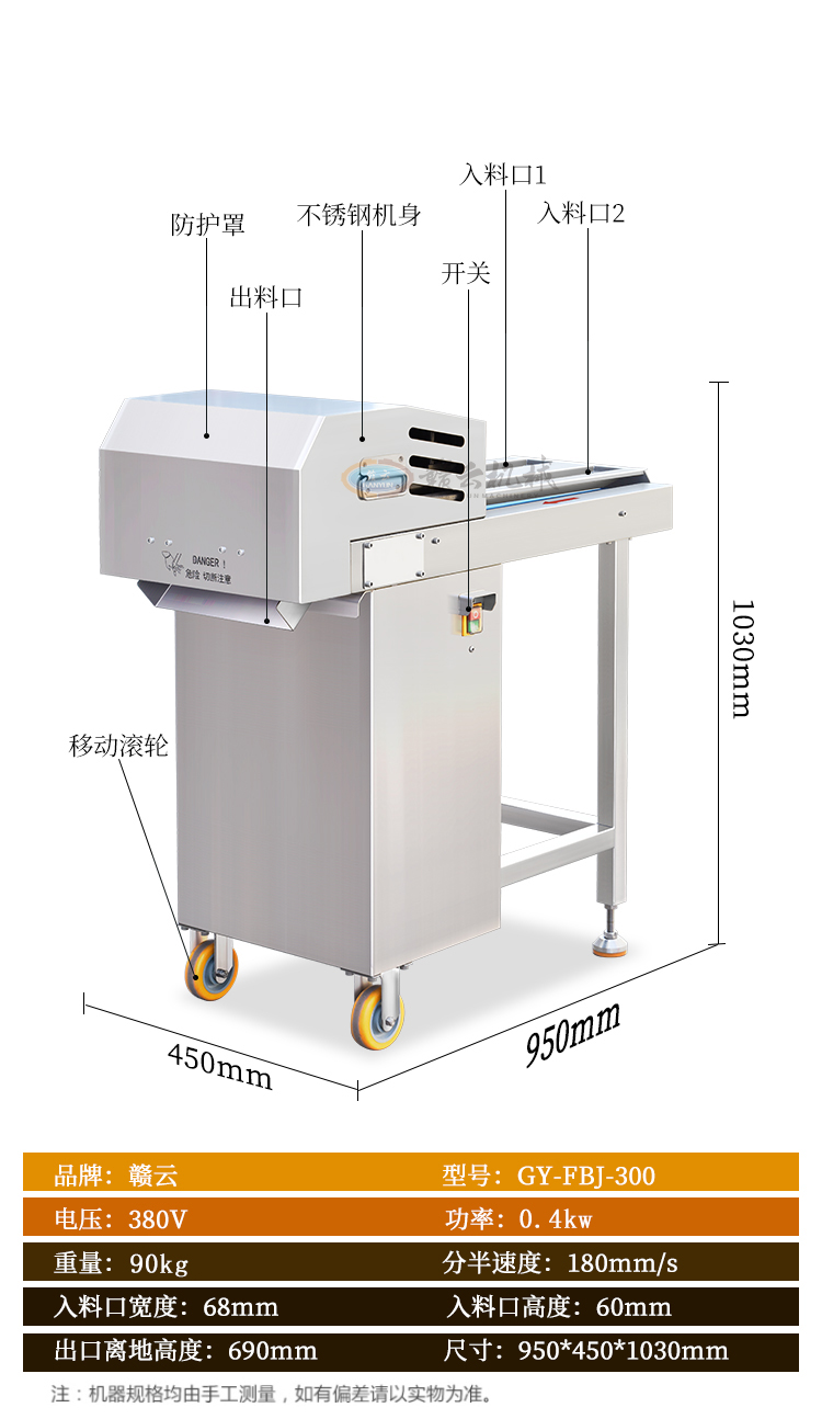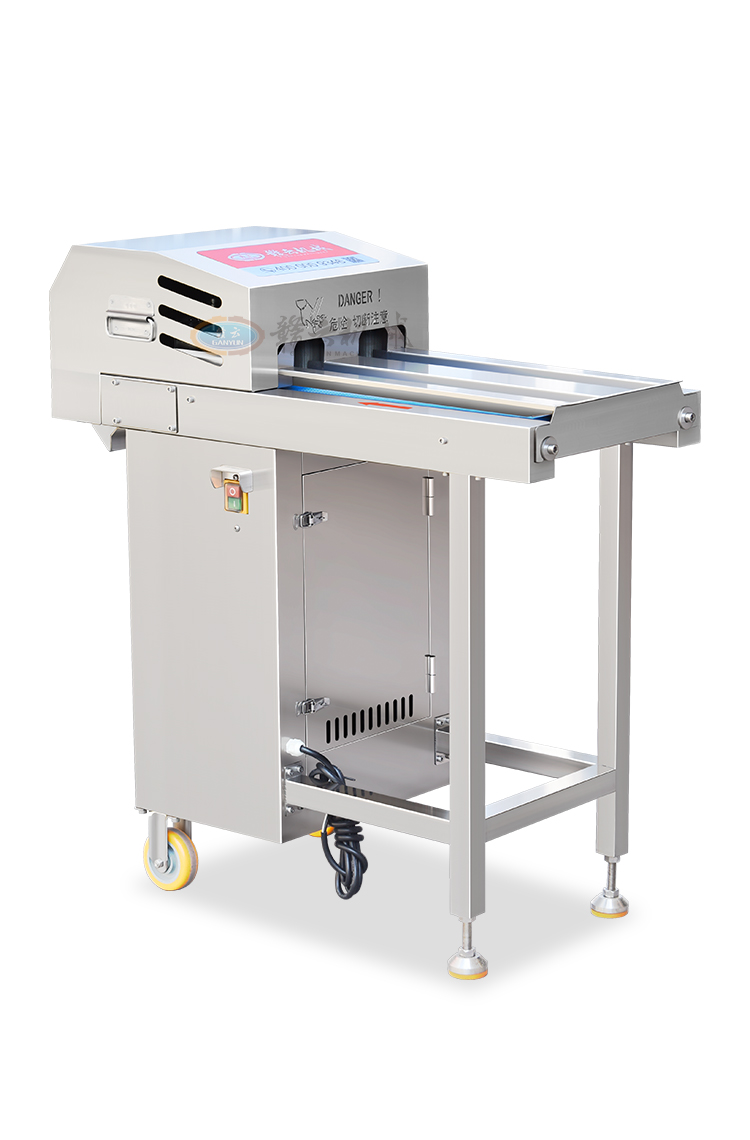 贛云雙路連續(xù)式分半機(jī),機(jī)器采用不銹鋼材質(zhì),輸送帶雙通道設(shè)計(jì),機(jī)器擁有自動(dòng)定位物料對(duì)中夾持功能,防止物料跑偏,切出來(lái)的物料兩半均勻,效果好。 機(jī)器采用人性化設(shè)計(jì),無(wú)論是入料和操作面板,無(wú)需要經(jīng)驗(yàn)都能輕松駕馭。機(jī)器適用于雞爪、鴨頭、鵝頭、海參、魷魚(yú)頭、胡蘿卜、豬喉等對(duì)稱(chēng)分半加工,切割效率高,分半均勻,切面平整效果好。需要了解鴨頭切兩半設(shè)備、連續(xù)式劈半鴨頭雞頭機(jī)、微凍鴨頭鹵鴨頭切半的機(jī)器、雞頭鵝頭切半機(jī)、連續(xù)雞爪子切半機(jī)機(jī)器、檸檬風(fēng)爪加工設(shè)備等,可以聯(lián)系贛云機(jī)械。