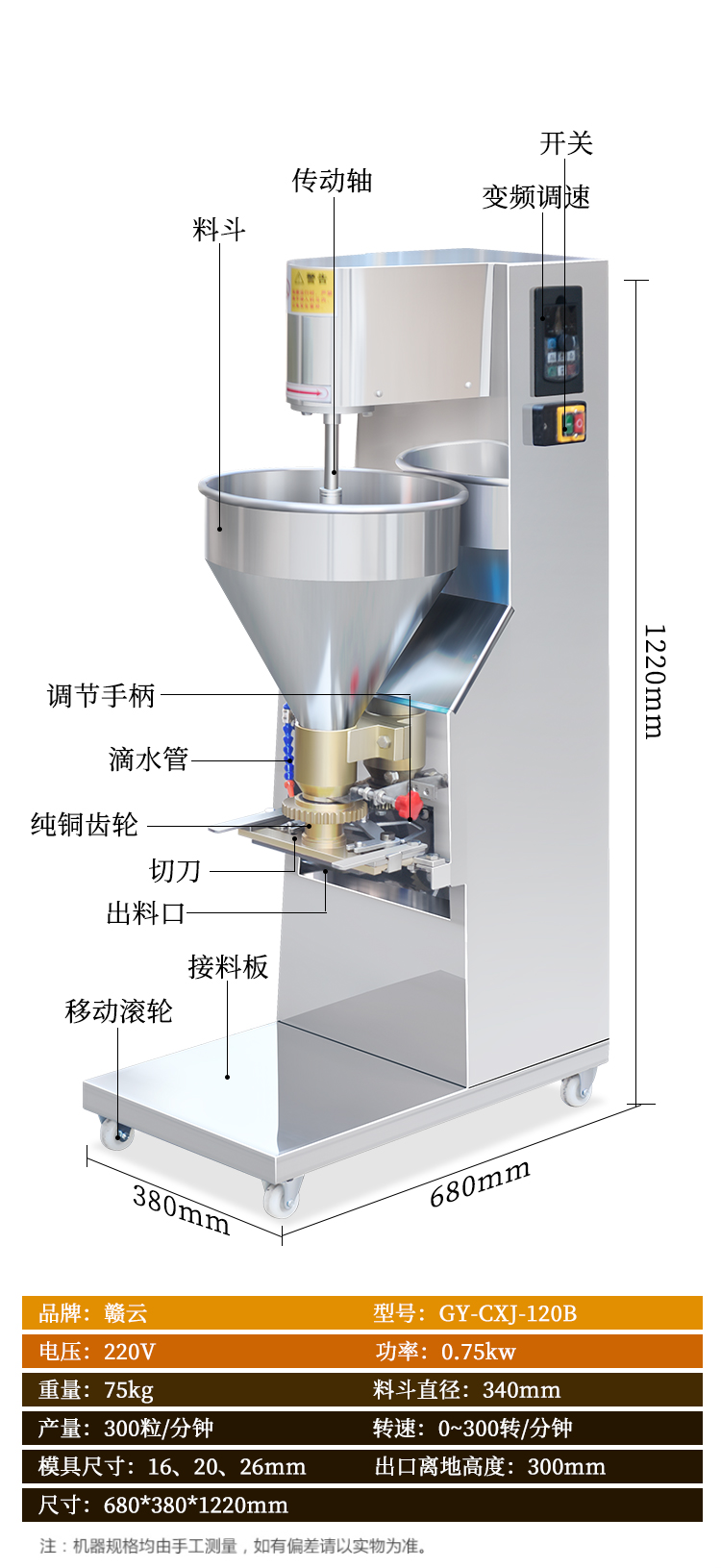 主頁-> 肉丸成型機械->實心肉丸機->120調(diào)速肉丸成型機
