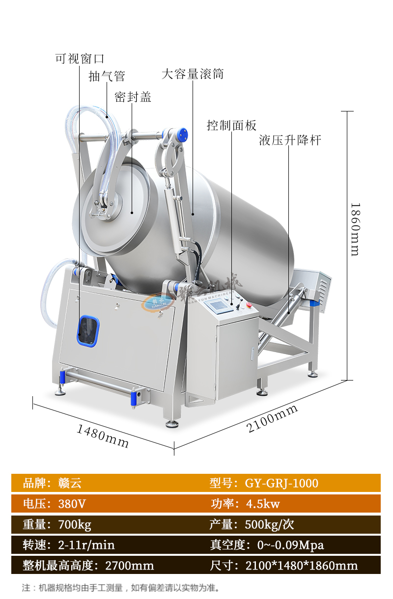肉制品前處理->斬拌滾揉設(shè)備->1000型液壓真空滾揉機(jī)  | |||||||