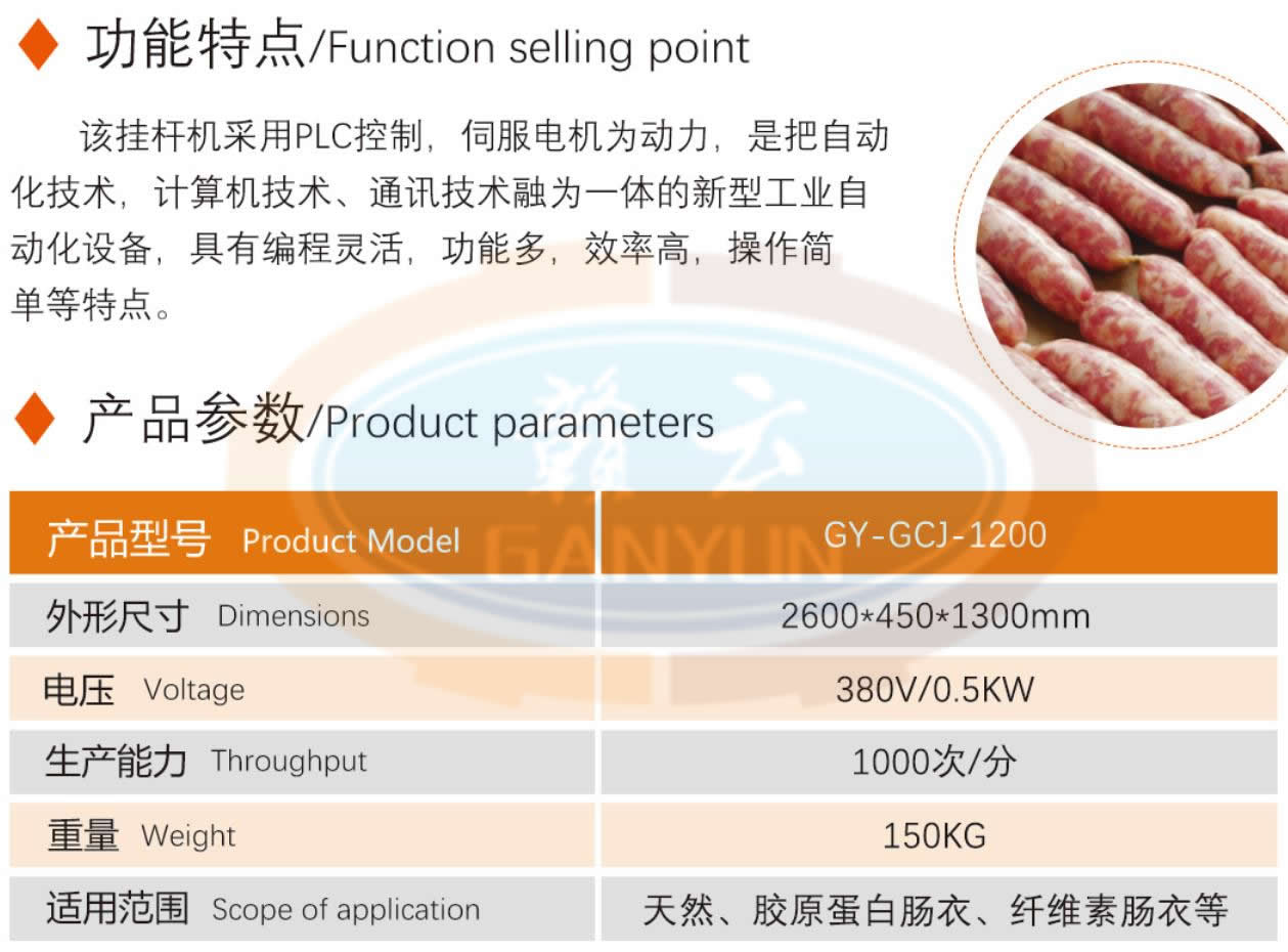肉制品前處理->專用灌腸設(shè)備->1200自動(dòng)香腸掛桿機(jī)  | |||||||