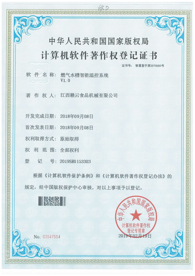計算機軟件著作權登記證書(燃氣水槽智能溫控系統(tǒng))