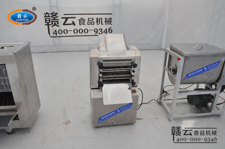 立式壓面機(jī)壓面(壓面過(guò)程不斷加入干面粉)