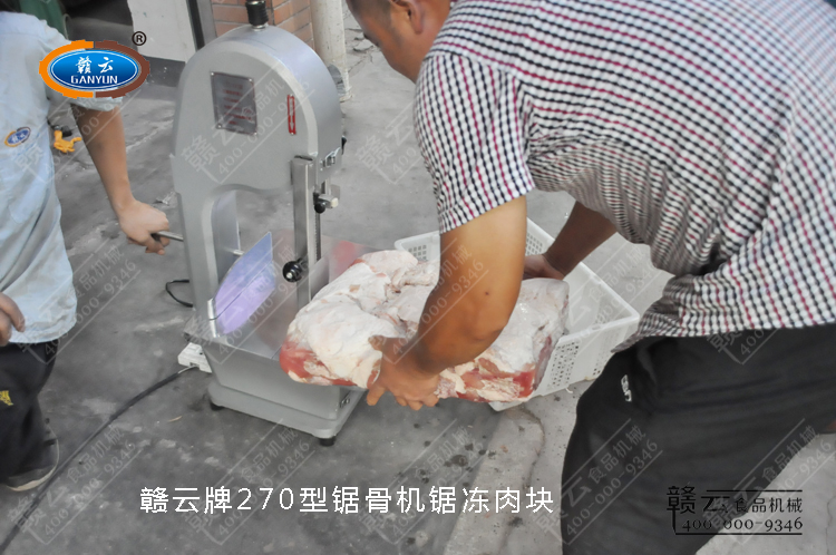 凍肉塊一般都是采用凍肉刨肉機(jī)加工處理刨成片狀,一般大型凍肉制品加工廠才會(huì)使用,但是小型的食品加工廠只是偶爾用到,今日贛云告訴你,凍肉塊也可以用贛云牌270型商用小型鋸骨機(jī)切割,而且切面整齊,機(jī)械占地面積小,不損傷肉類組織細(xì)胞,除了可以鋸凍肉,都凍骨頭、新鮮排骨、凍魚(yú)等切割效果也非常好。
