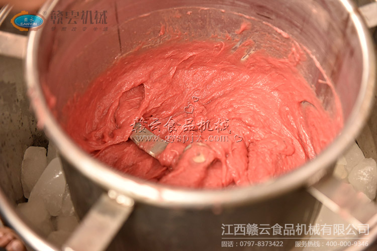 本次試機(jī)主要采用了32型強(qiáng)力絞肉機(jī)、28型高速肉丸打漿機(jī)和贛云第三代包心肉丸機(jī),由于市場購買的是新鮮牛肉,所以原定計(jì)劃采用變頻慢速肉丸打漿機(jī)試機(jī)的臨時改為高速肉丸打漿機(jī)。