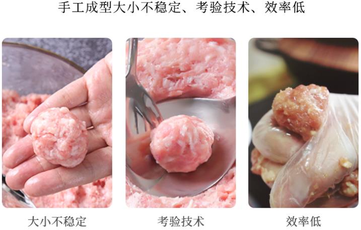 通過(guò)這種方法能夠保證肉丸的風(fēng)味,但是其生產(chǎn)效率低下,而且不易保持一致的產(chǎn)品質(zhì)量。手工制作肉丸還容易受到操作人員技術(shù)水平的影響,導(dǎo)致產(chǎn)品規(guī)格不一。
