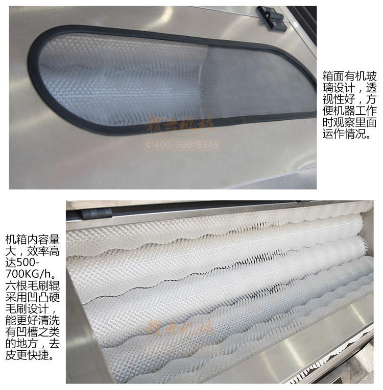 本設(shè)備主要采用304#不銹鋼制作(電機(jī)減速機(jī)、電器元件、軸承、毛輥刷等特殊部件除外),符合食品加工衛(wèi)生要求,,整機(jī)操作簡(jiǎn)便、便于操作,具有工作平穩(wěn)可靠、噪音低、工作效率高等特點(diǎn)。